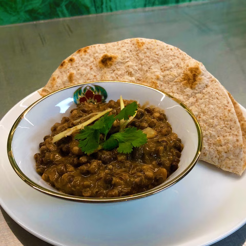 “This is one of my favourite dals, the Punjabi name is Maa di dal (Black Urad dal). When you add butter to dishes made with this dal is it known as Makhani Dal because of the rich creamy texture from the butter added to it. It is a celebratory dal, as it takes time but is not difficult. Make it on a day when you have time to let it cook slowly and note that the dal needs soaking overnight so plan ahead for this.”