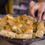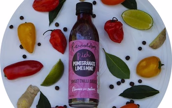 Ellis recommends that you serve it warm, with a squeeze of lemon, alongside Rennoldson’s pomegranate, lime and mint sweet chilli sauce!